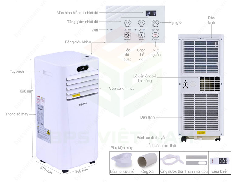 Điều hòa di động Fujihome được trang bị nhiều chức năng tiện ích như làm mát, hút ẩm và quạt gió. Một số model còn tích hợp thêm tính năng lọc không khí hoặc điều khiển từ xa giúp việc sử dụng thuận tiện hơn trong quá trình vận hành.